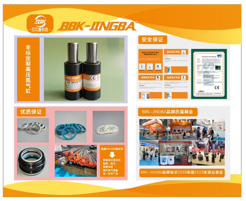BBK-JINGBA氮气弹簧的设计可满足客户对产品可靠性、安全性、使用寿命的期望及现代时尚理念。BBK-JINGBA氮气弹簧的设计、生产及测试均符合欧洲压力设备标准(97/23/EC)。